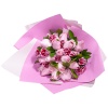 Ramo princesa de 24 rosas rosadas con claveles fuccia, estos colores cálidos le dan un toque especial y elegante para sorprender. Ver detalle